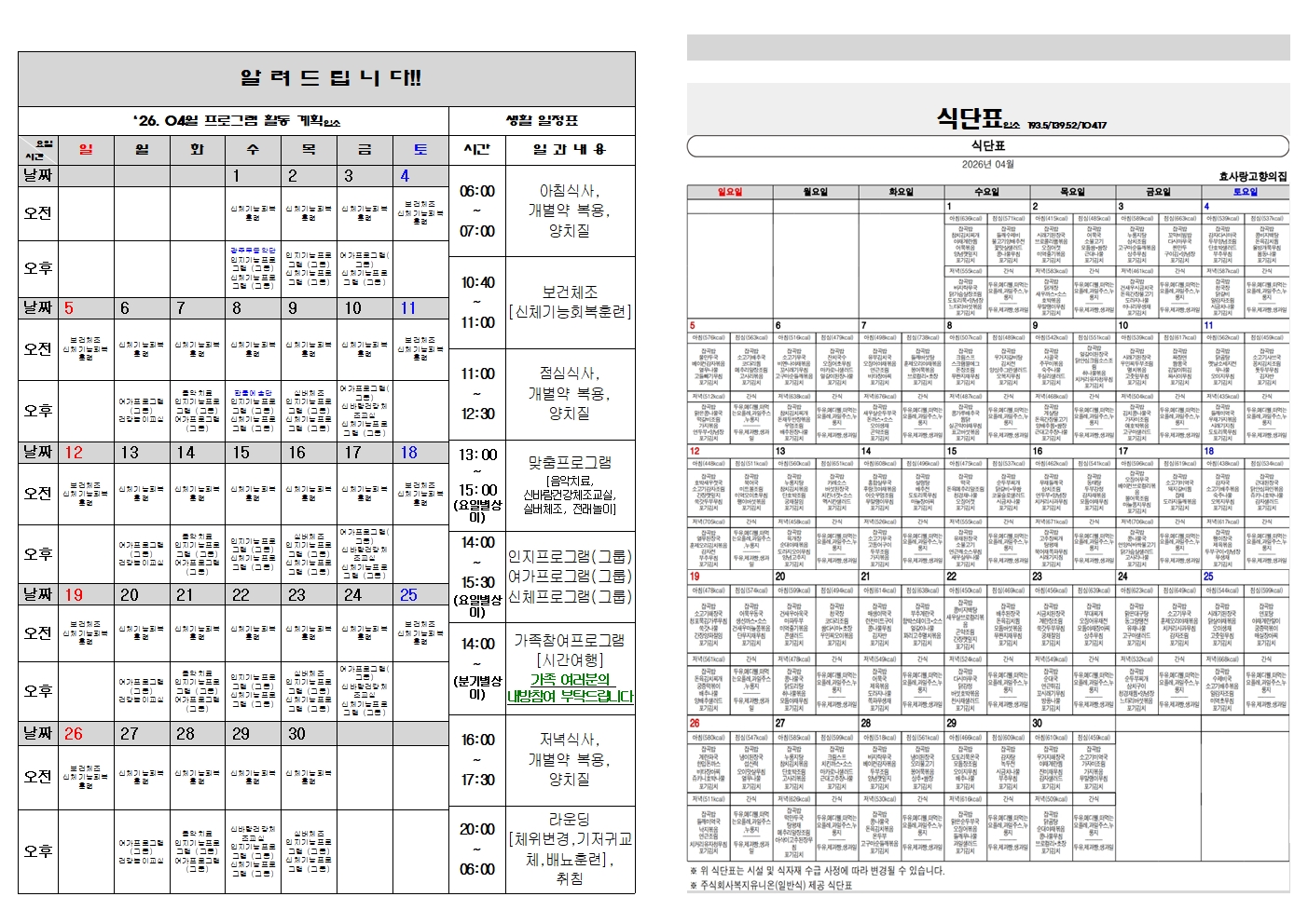 프로그램 일정표